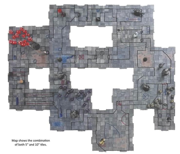 The interlocking tile modularity allows the Dungeon Master to draw many details of an area at his seat and then simply hand the tile to the nearest player to connect.