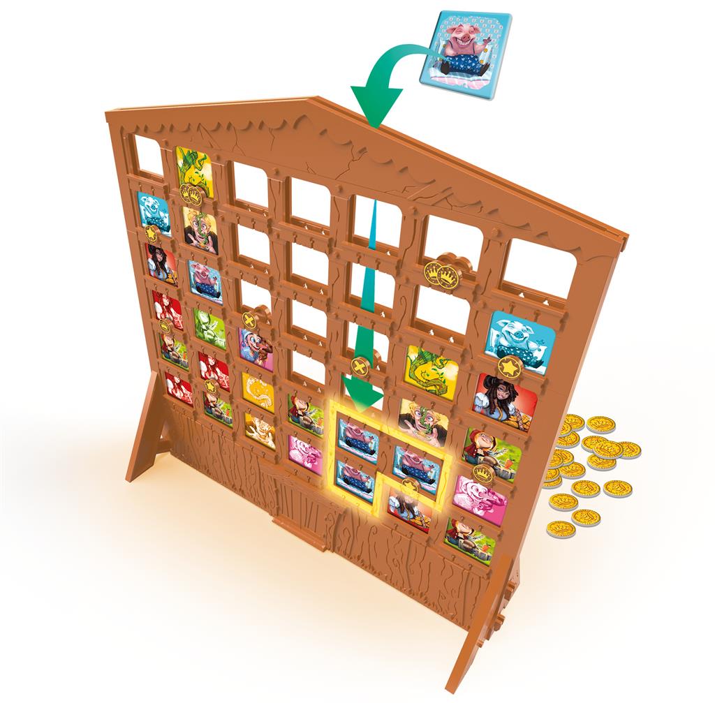 In Fairy Tale Inn, players are looking to fill up their Inn with Guests. They’ll pick from different fairy tale characters on the Guest List and slide them into the vertical Inn. Every character has a special ability, and certain rooms do as well, giving gold to the players in different ways. When three columns of the Inn are filled, the points are tallied and the player with the most gold is the winner.