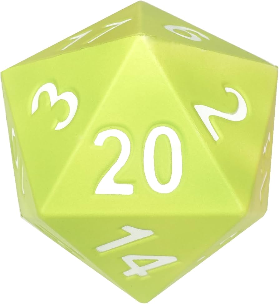 Take your favorite roleplaying game outdoors with the Giant D20! Play on a table, in the grass, on the beach, or even in the pool! With six vibrant colors and a soft foam core, these dice are 5 inches face-to-face and make a magical addition to your dice collection. Collect all 6 colors or go deep on your favorites! Giant D20's make great gifts for gamers of all ages.