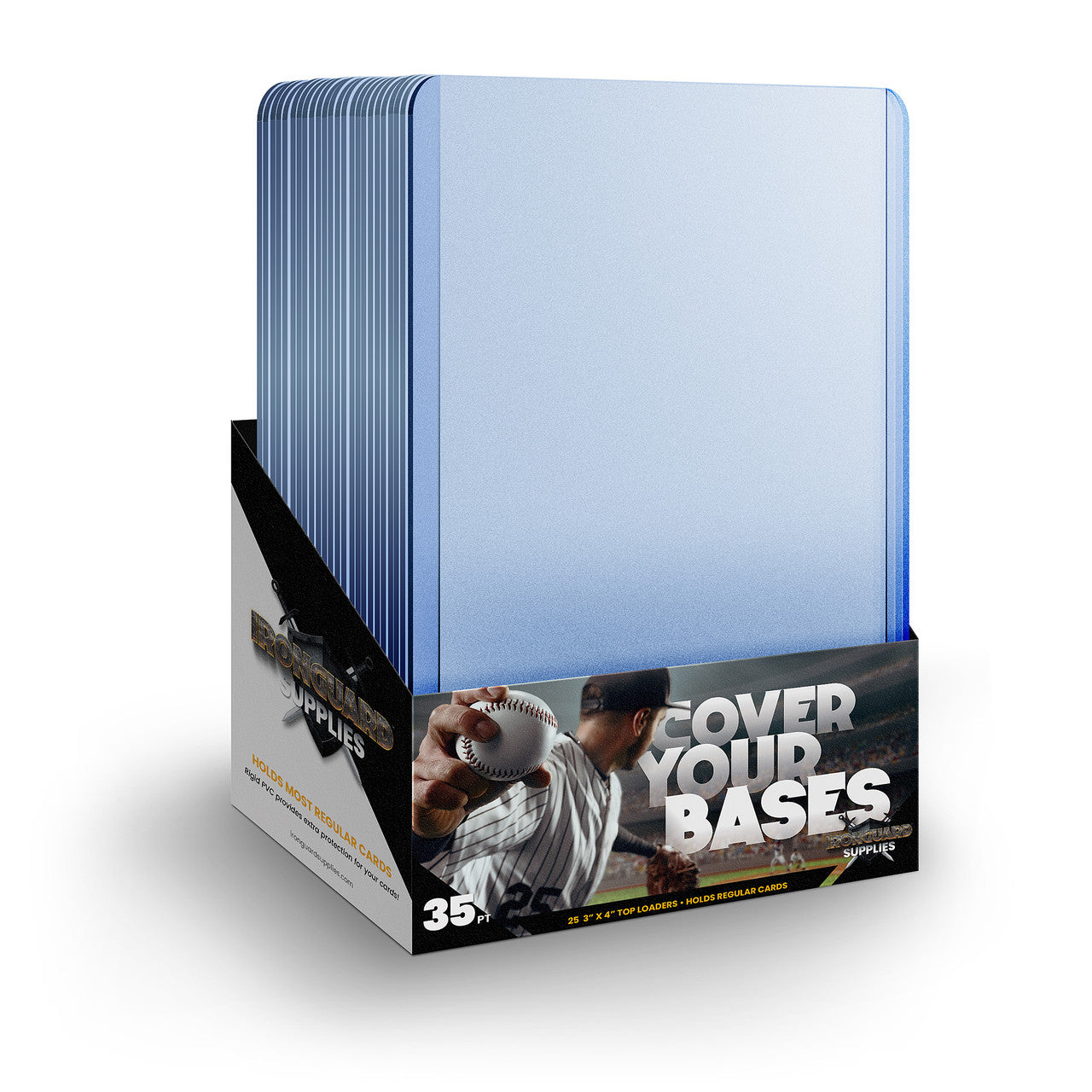 Designed for regular-thickness 2.5" by 3.5" cards, these 35 pt card holders are made of rigid PVC, and measure 3" by 4". Bundled in packs of 25, each with a full-color insert.
