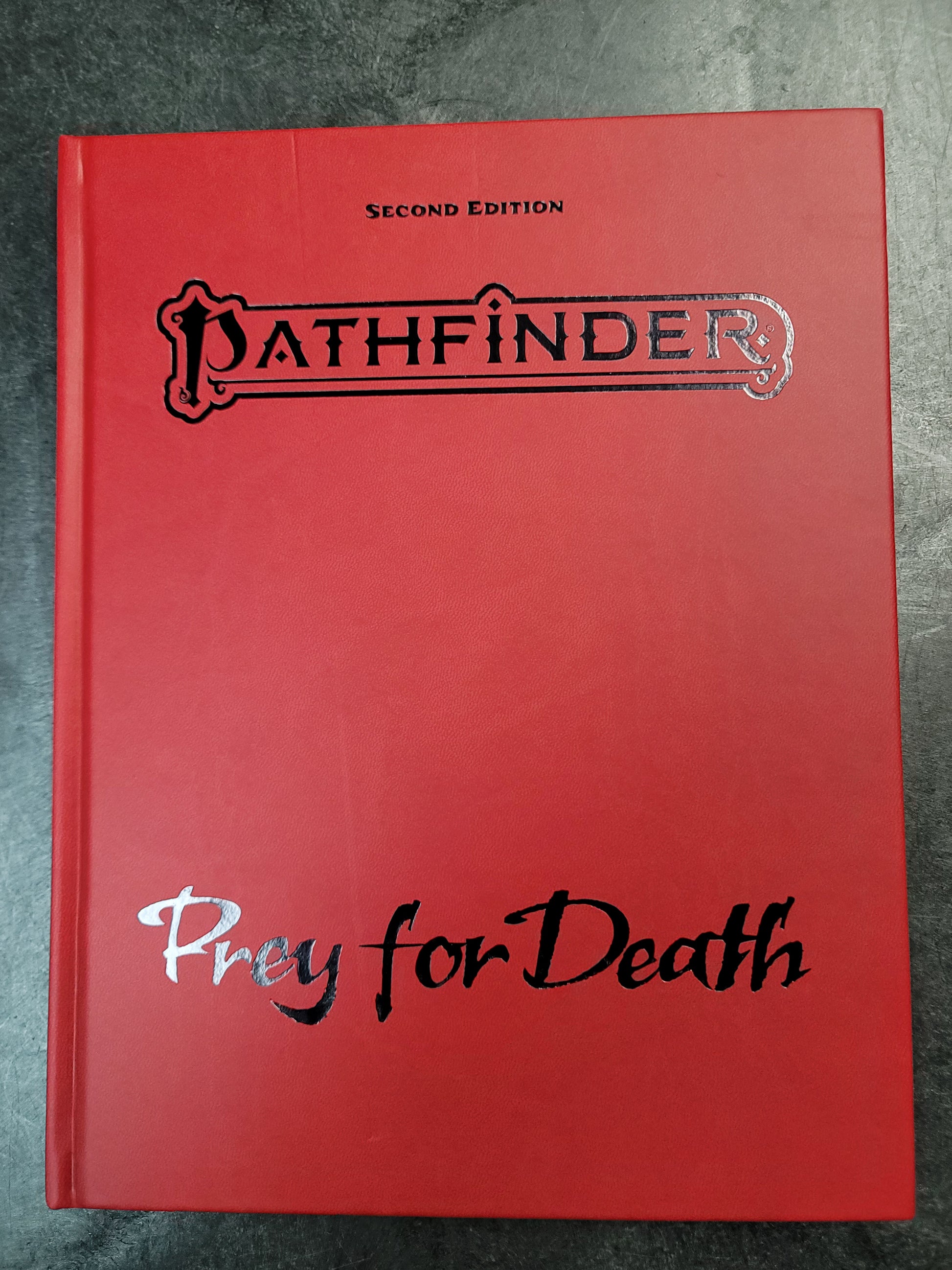 Prey for Death is a deluxe hardcover Pathfinder Second Edition adventure for 14th level characters, and gives players the chance to play members of the world's most notorious assassin's guild. The adventure also includes new items, lore, and character backgrounds, as well as a several powerful monsters ready to threaten high level characters!